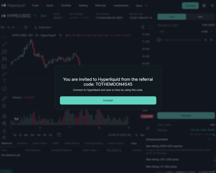 1)ウォレット接続 ハイリキのアプリ(app.hyperliquid.xyz など)へアクセス →「Connect Wallet」→ MetaMaskを選択 → 署名(Sign)で接続。